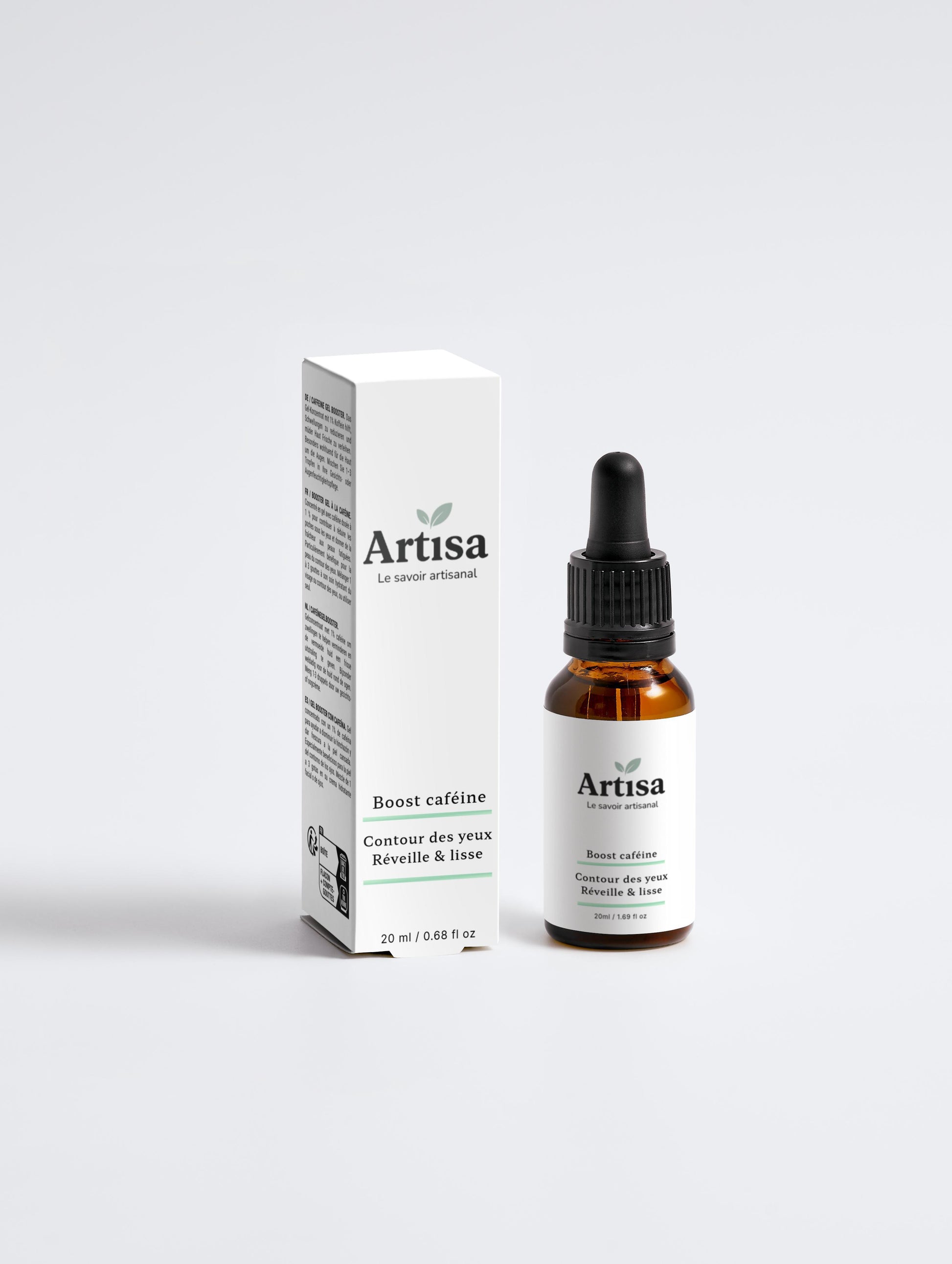 Ce gel artisanal et naturel , composé de caféine, stimule la microcirculation, aide à réduire l'apparence des cernes et des poches, et adoucit les signes de fatigue.